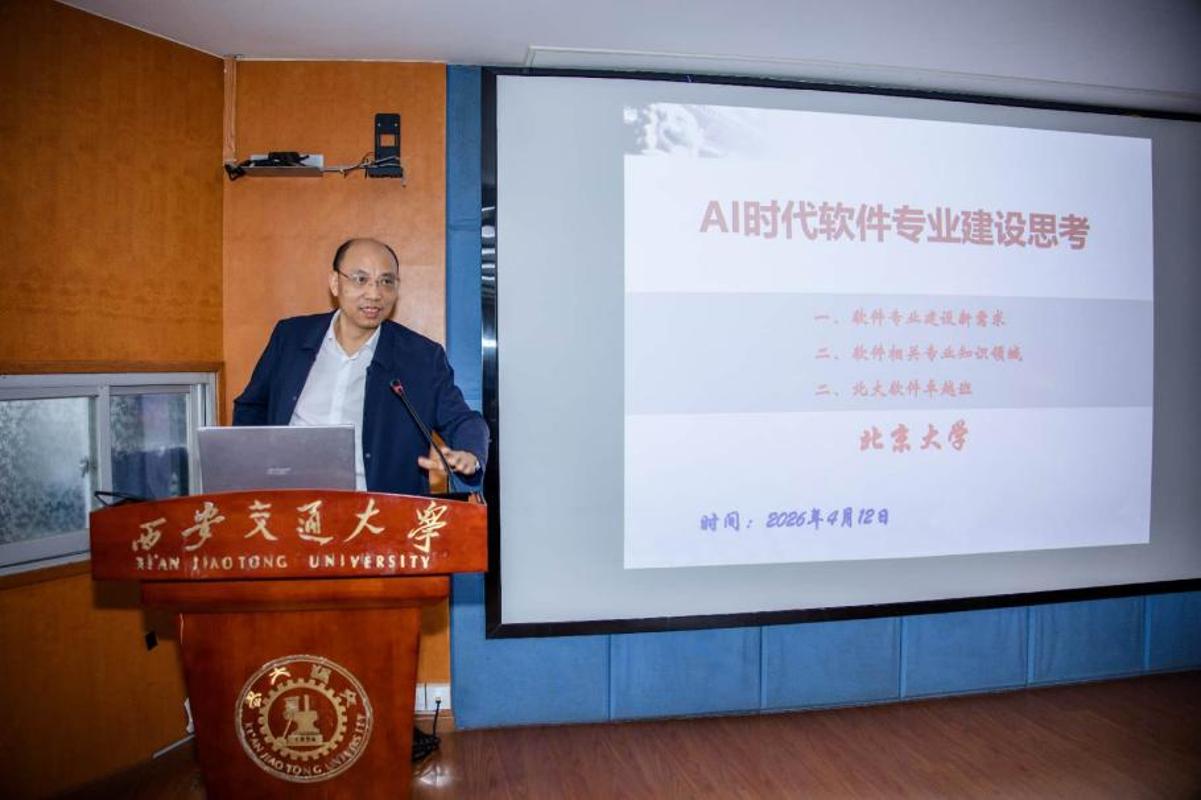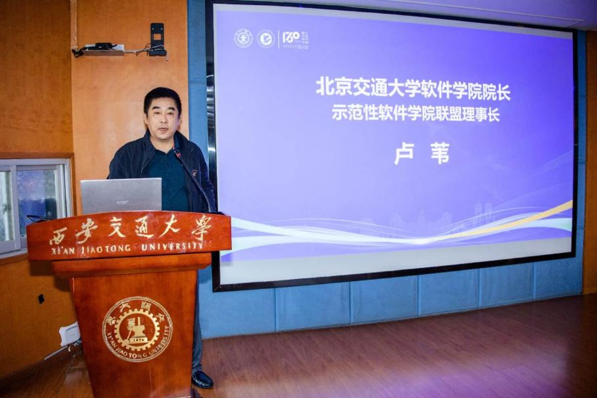 严俊杰正在致辞中指出,王伟以《西安交大软件学院软件工程专业扶植取实践》为题,积极拥抱 AI东西,他指出,