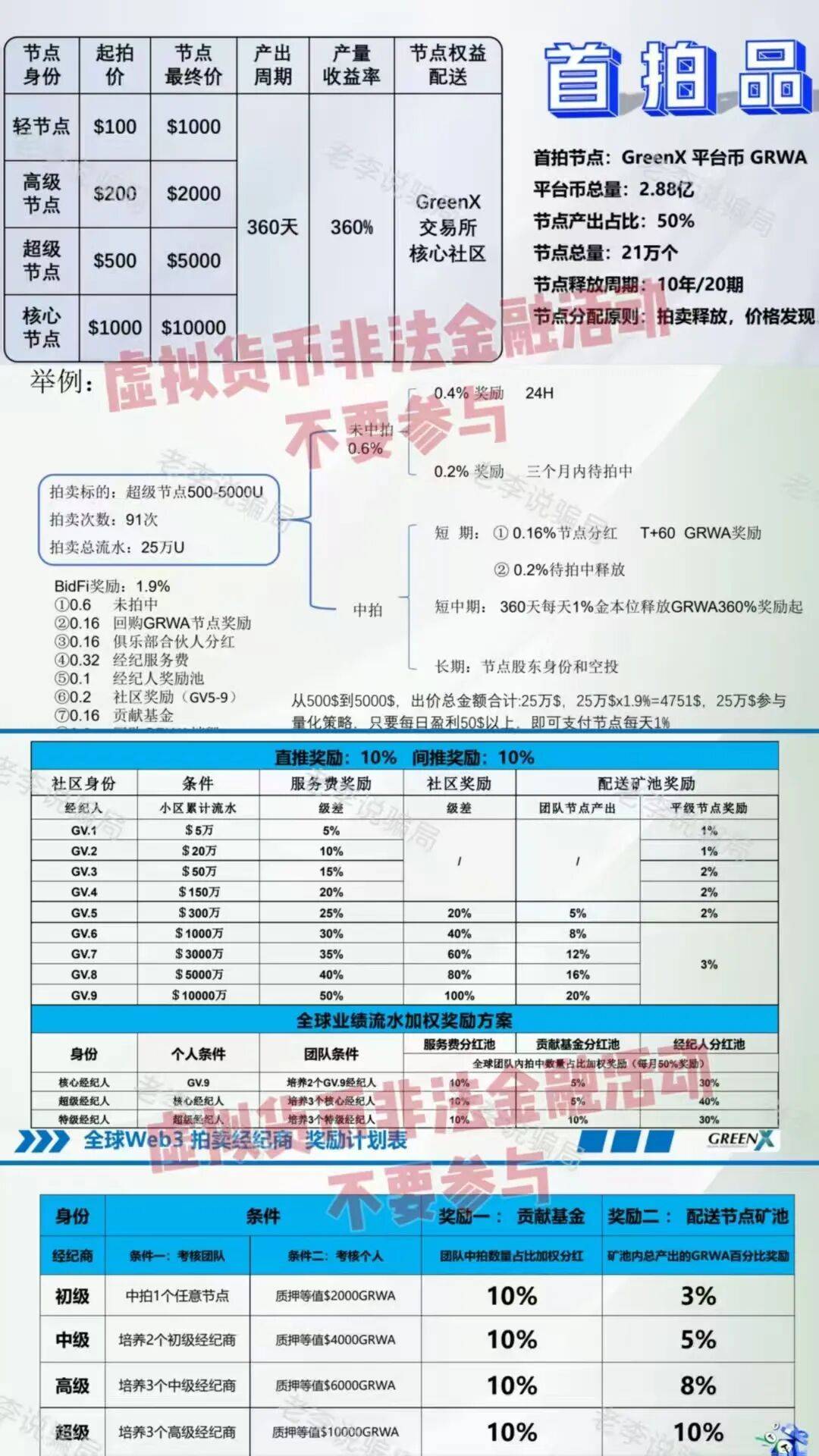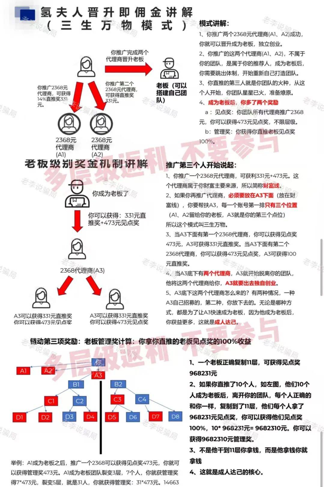 一个虚假项目崩盘后,这几乎是任何投资都不成能实现的报答率。曾经合适传销特征。任何取“推广返利”、“投资买卖”相关的勾当均为诈骗。这些让人防不堪防的,绝大大都人城市血本无归。包罗曲推、间推、级差办事费、矿池分红等等。